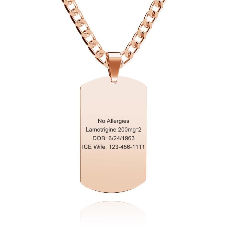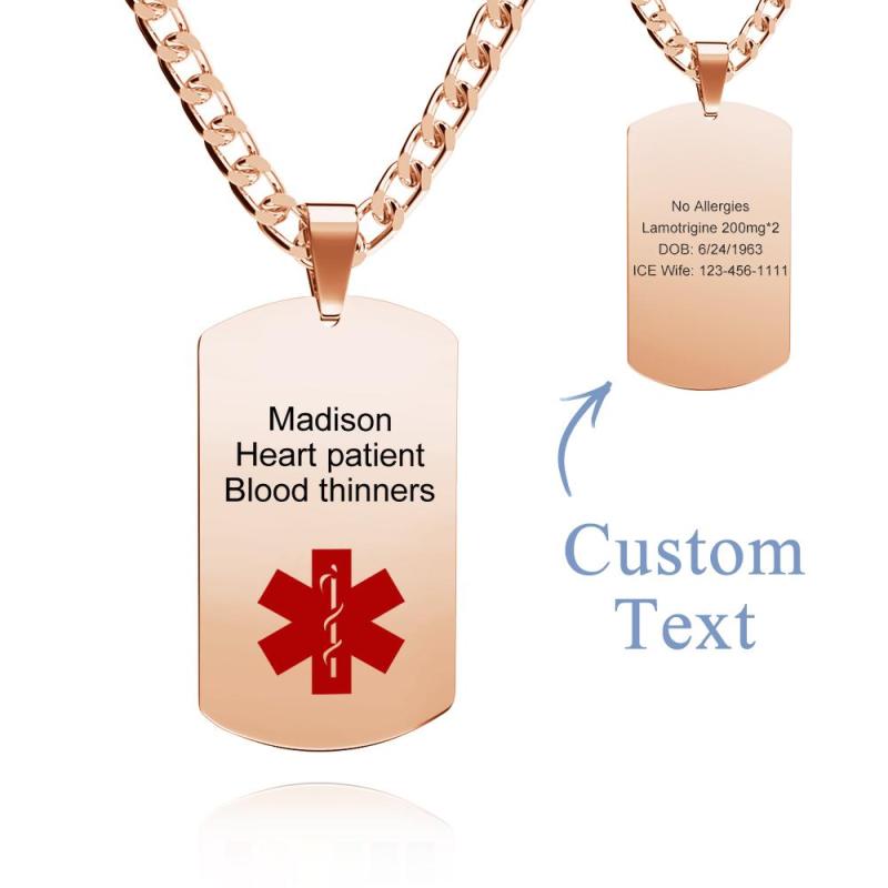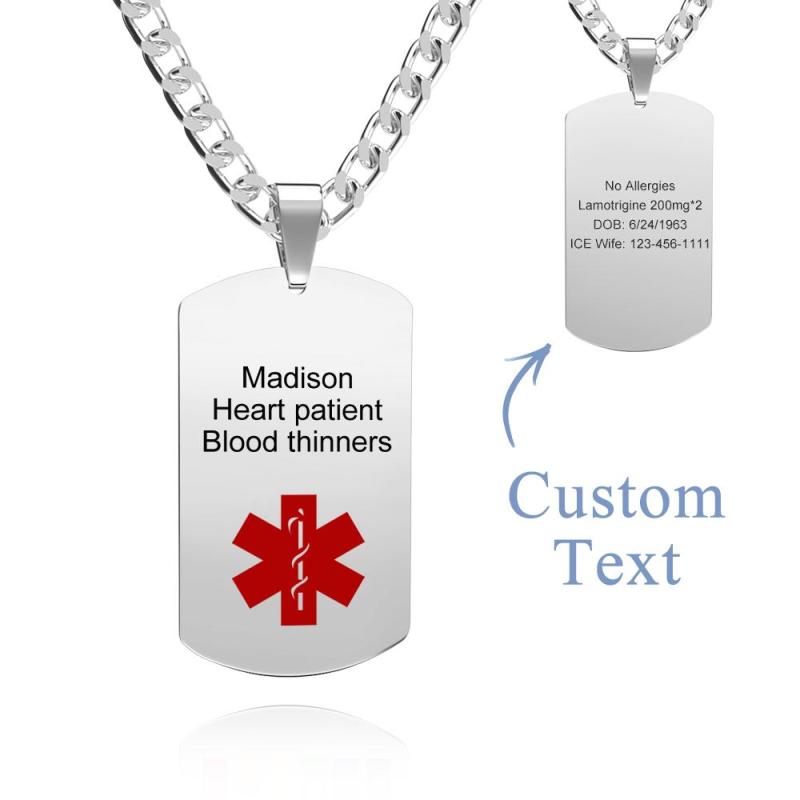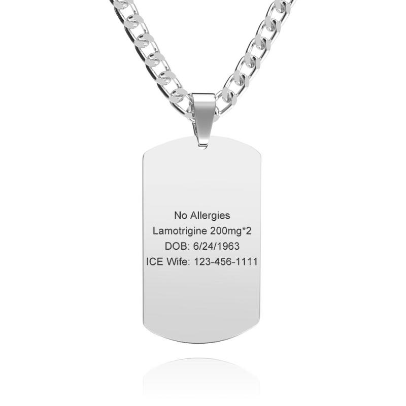 Medical Alert Emergency ID Necklace Men's Tag Necklace with Double Sides Engraving Stainless Steel Personalized Medical Necklace