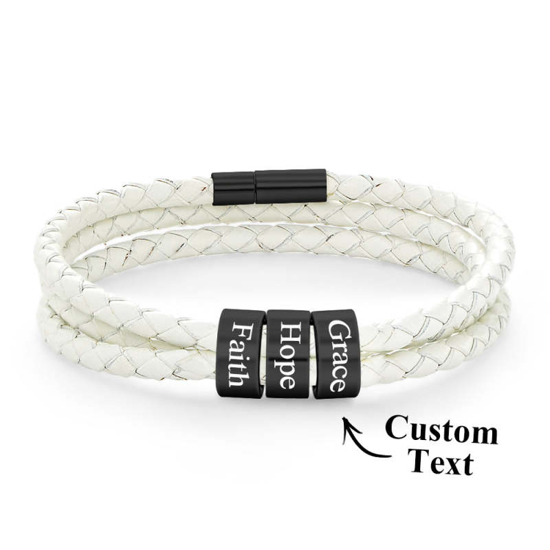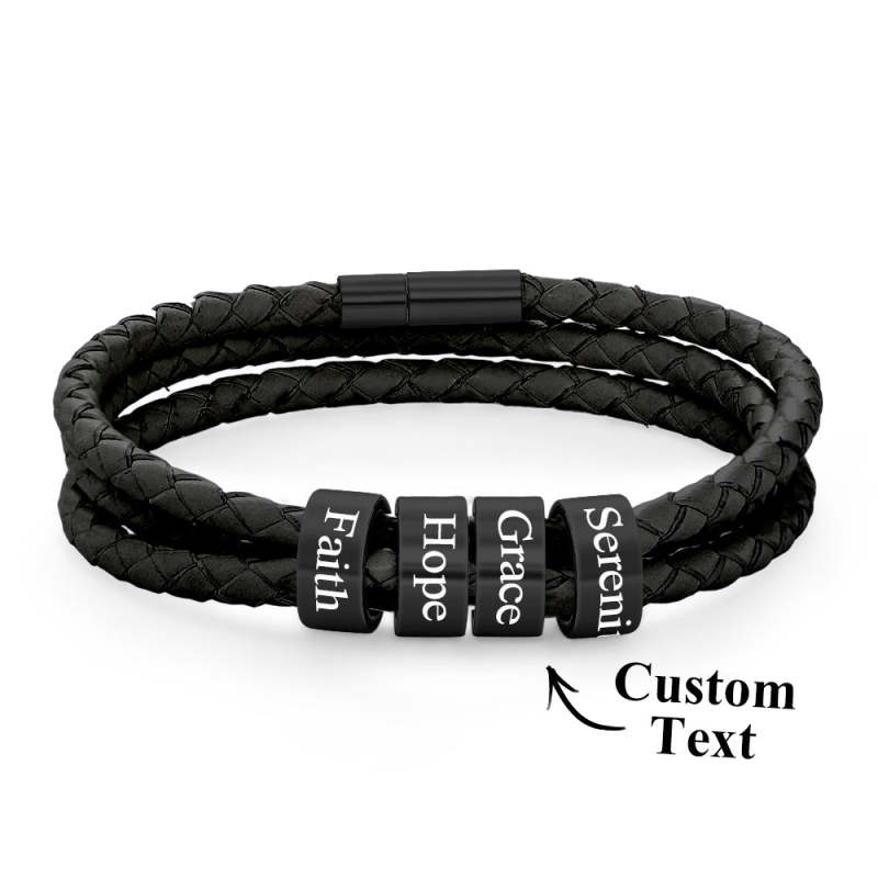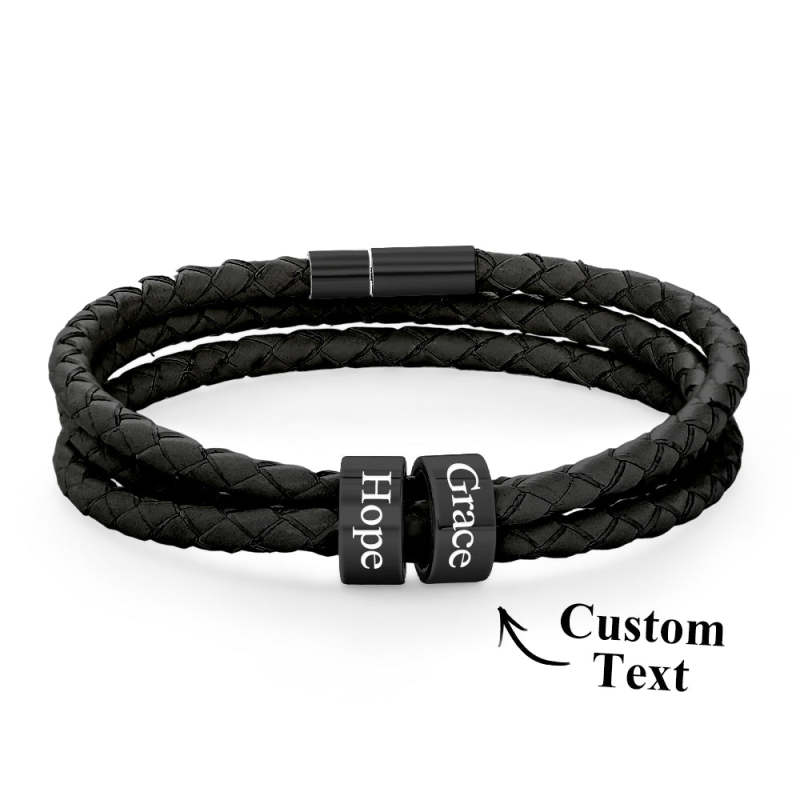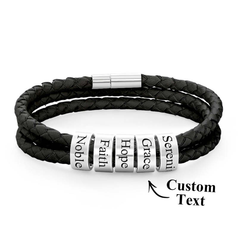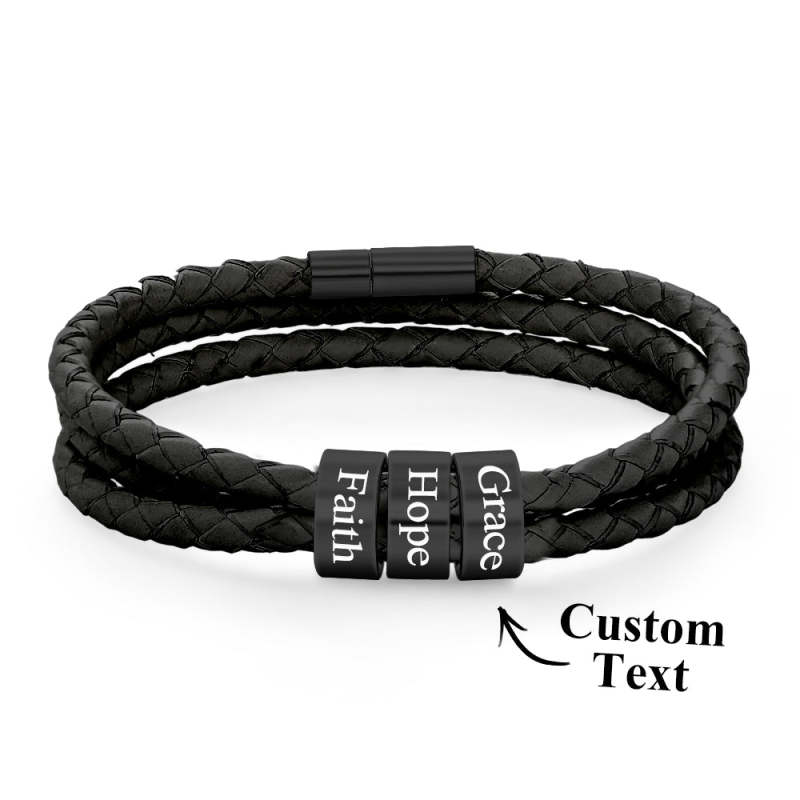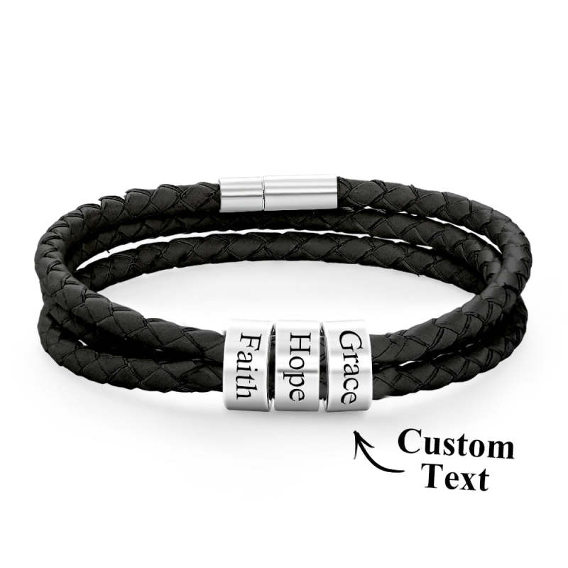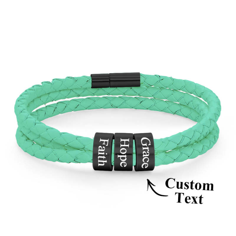Men Braided Leather Bracelet with Small Custom Beads