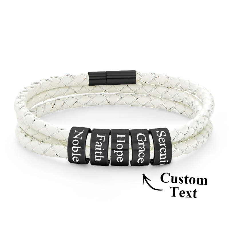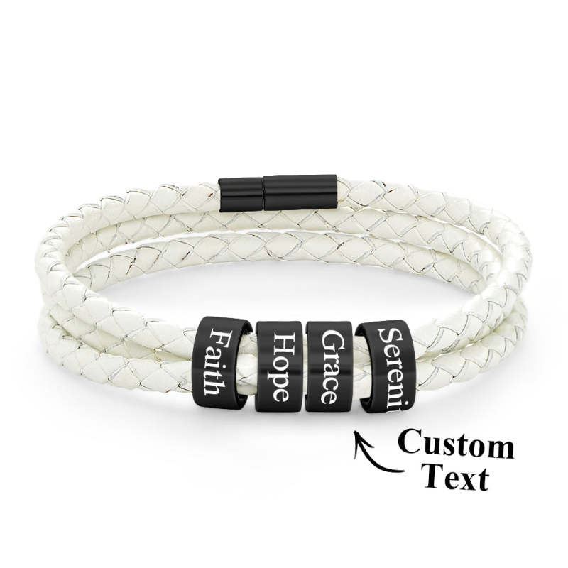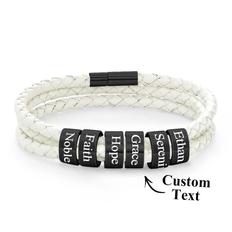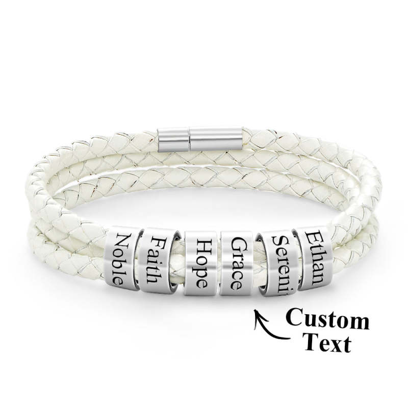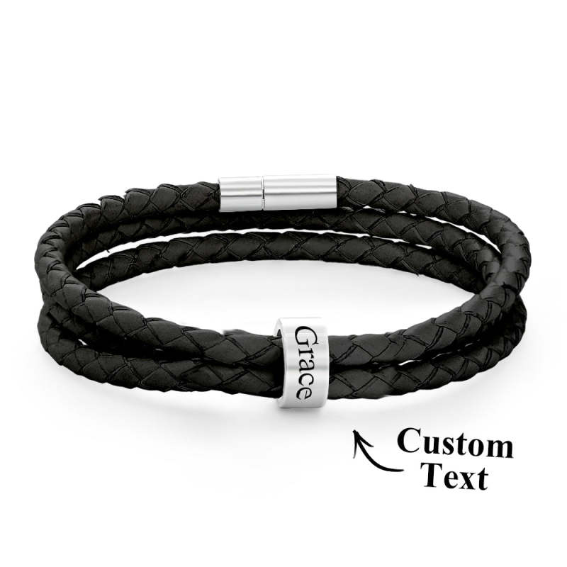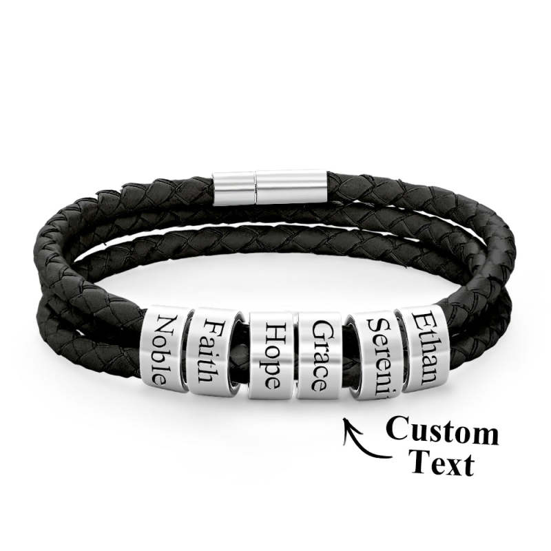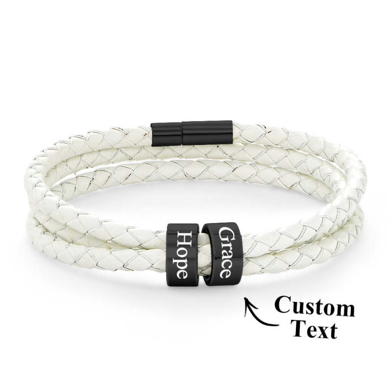 Men Braided Leather Bracelet with Small Custom Beads