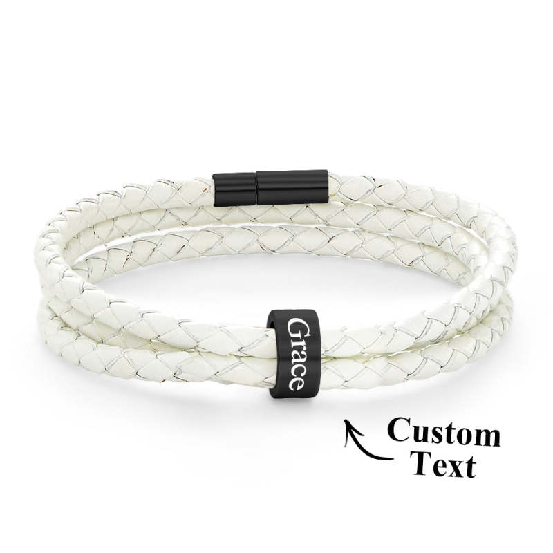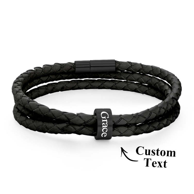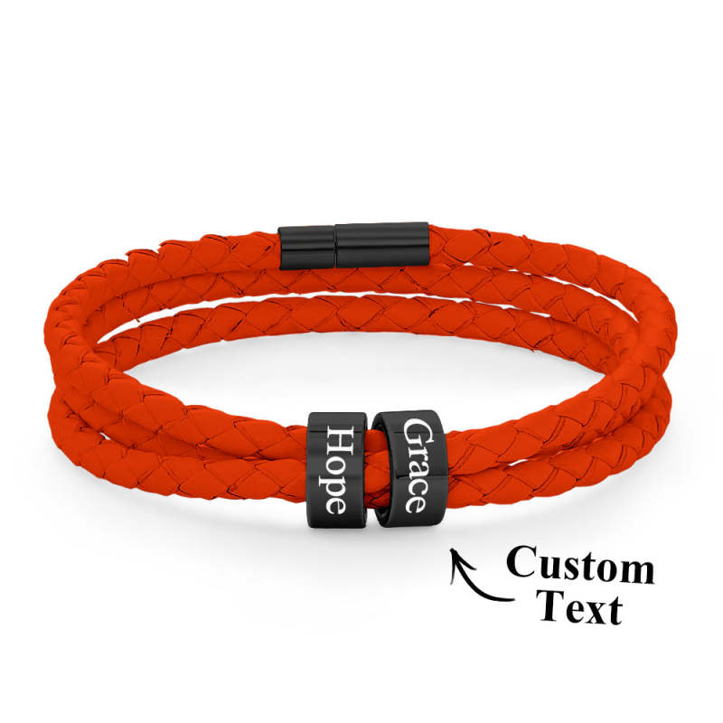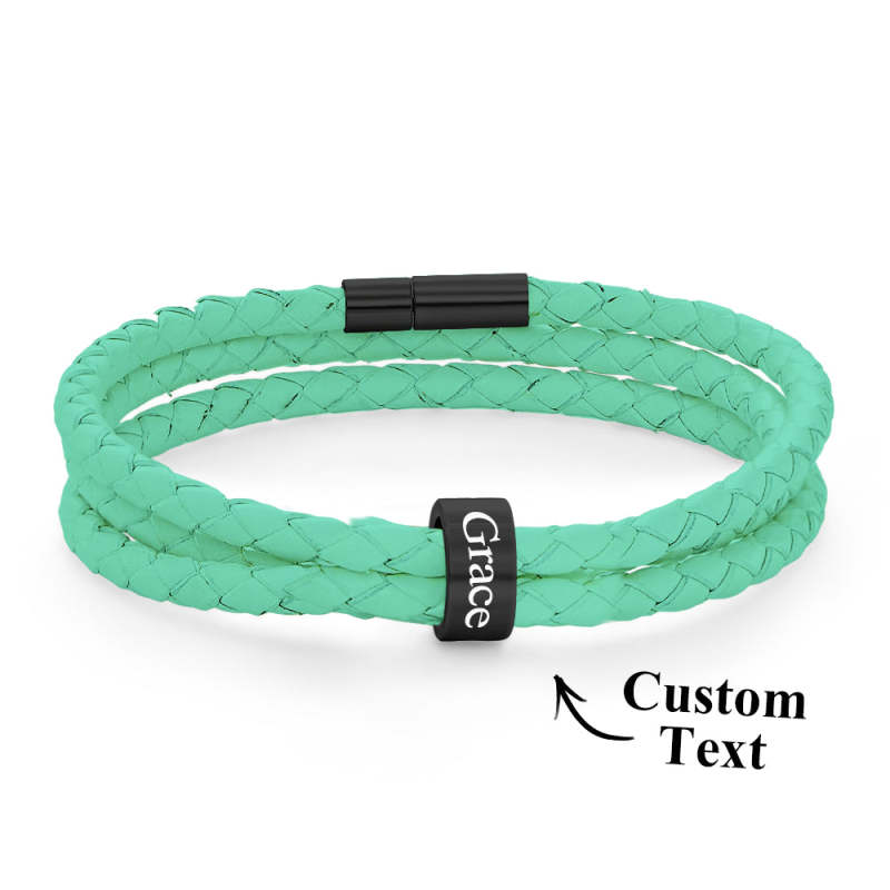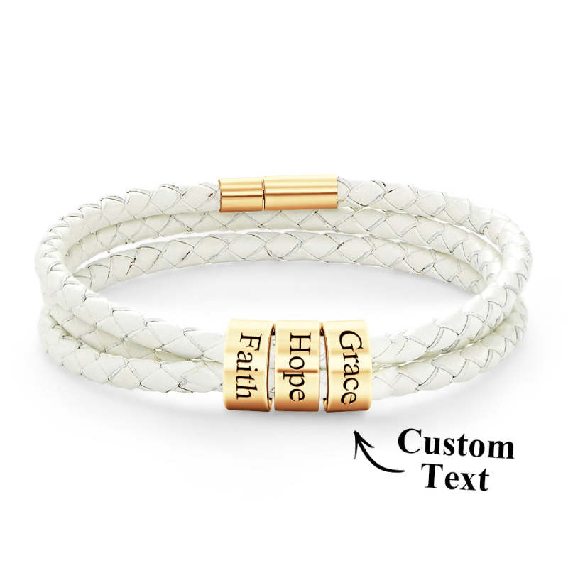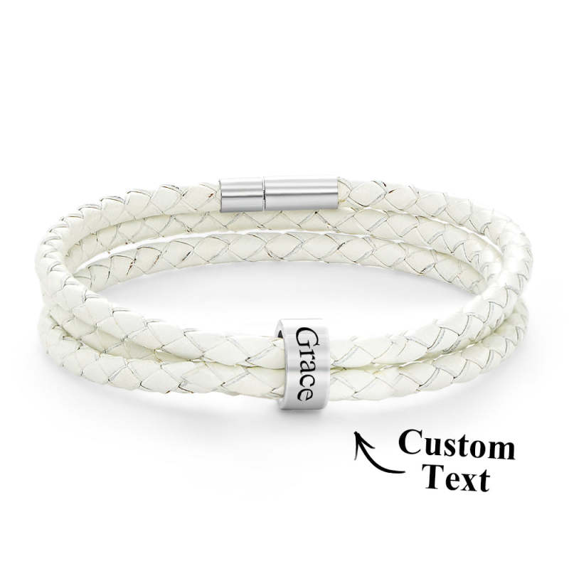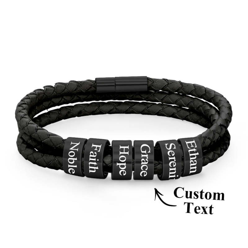 Men Braided Leather Bracelet with Small Custom Beads