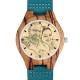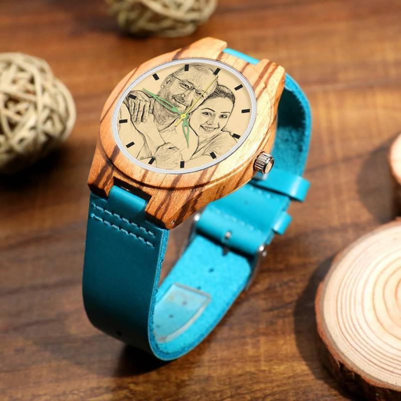 Men's Engraved Wooden Stripe Photo Watch Blue Leather Strap - Zebra Wood