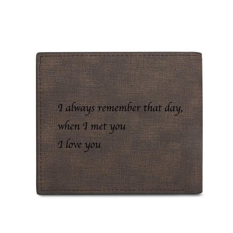 Men's Bifold Custom Inscription Photo Engraved Wallet - Coffee Leather Gift for Men.Our Photo Wallet will capture a moment that is gone forever. The photo will never fall off! This photo wallet is designed to provide you with a quick and easy way to create a unique and useful souvenir. Advanced fabric and the classic design makes the wallet even more stylish. The design is very traditional, the size is perfect, the details are very gorgeous, really have the appearance of high-end wallet. Once you place an order, you'll be able to preview how it will appear on the wallet. Please do remember high resolution picture will come out better than the preview. This wallet is a great birthday gift idea for all ages.