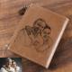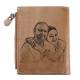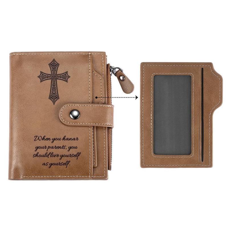 Men's Short Style Custom Inscription Photo Engraved Wallet with Cross Pattern - Brown Leather