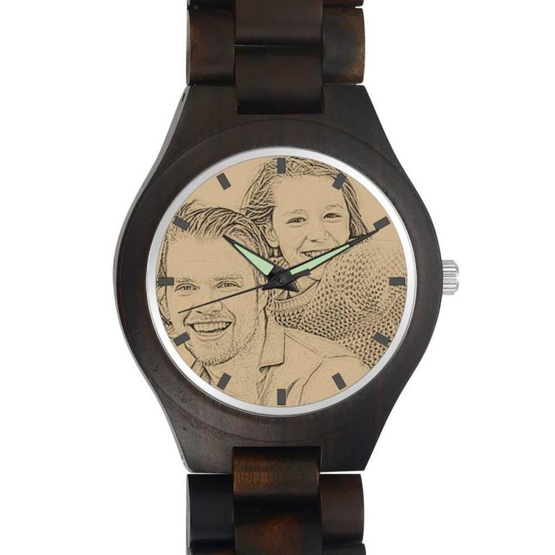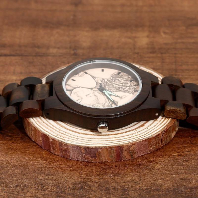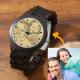 Men's Engraved Wooden Photo Watch Wooden Strap 45mm