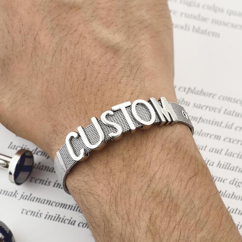 Men Wristband Custom Punk Jewelry Wide Nylon Band Bracelet DIY Custom 1-8 Initial Letter Charm