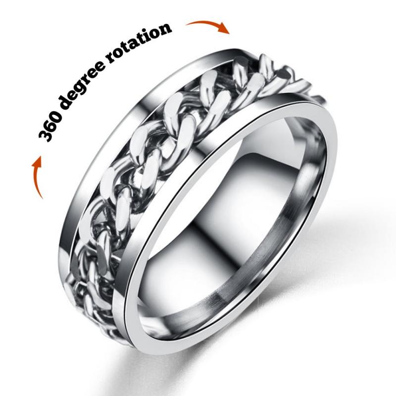 Grooved edge and curb chain inlaid design, personality Stainless Steel rotatable chain men ring, masculine and trendy. It is a very funny ring, fashion design suits for daily and perfect as a stress relief tool,Very Suitable For Moments That Require Meditation, Reduce Anxiety, Relax, Relieve Stress And Concentrate,? Ring Can Effectively Help You Release Bad Emotions And Enhance Your Happiness.