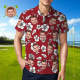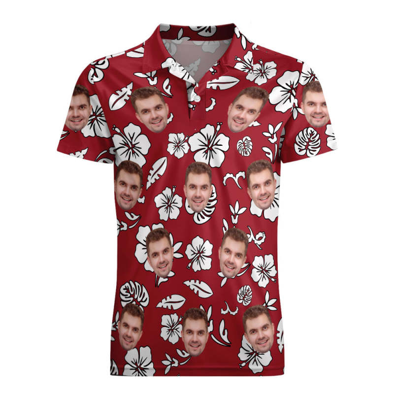 Men's Custom Face POLO Shirt Personalized Red Golf Shirts For Him White Leaves