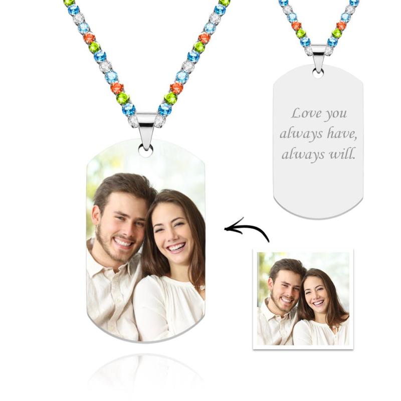 Men's Photo Tag Necklace With Engraving Tennis Chain Gifts For Him