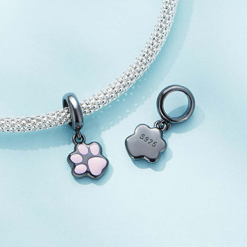 Mini Black Cat Claws Dangle Charm Silver