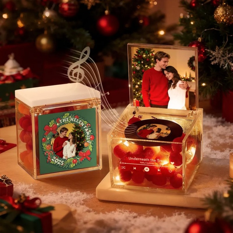 Mini Music Record Auto-Music Player Custom Photo with Light Personalized Music Acrylic Box