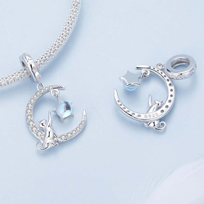 Moon Cat Dangle Charm Silver
