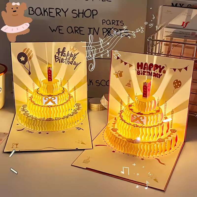 After receiving the greeting card, you need to first pull out the transparent card insert on the side of the card, so that the opened card can emit sound and light.