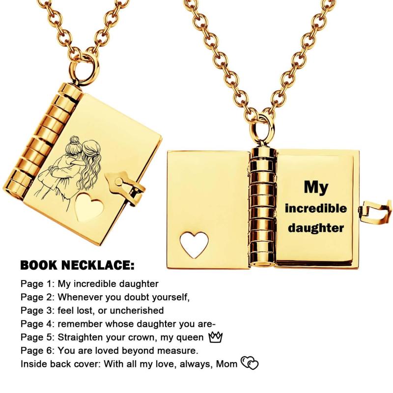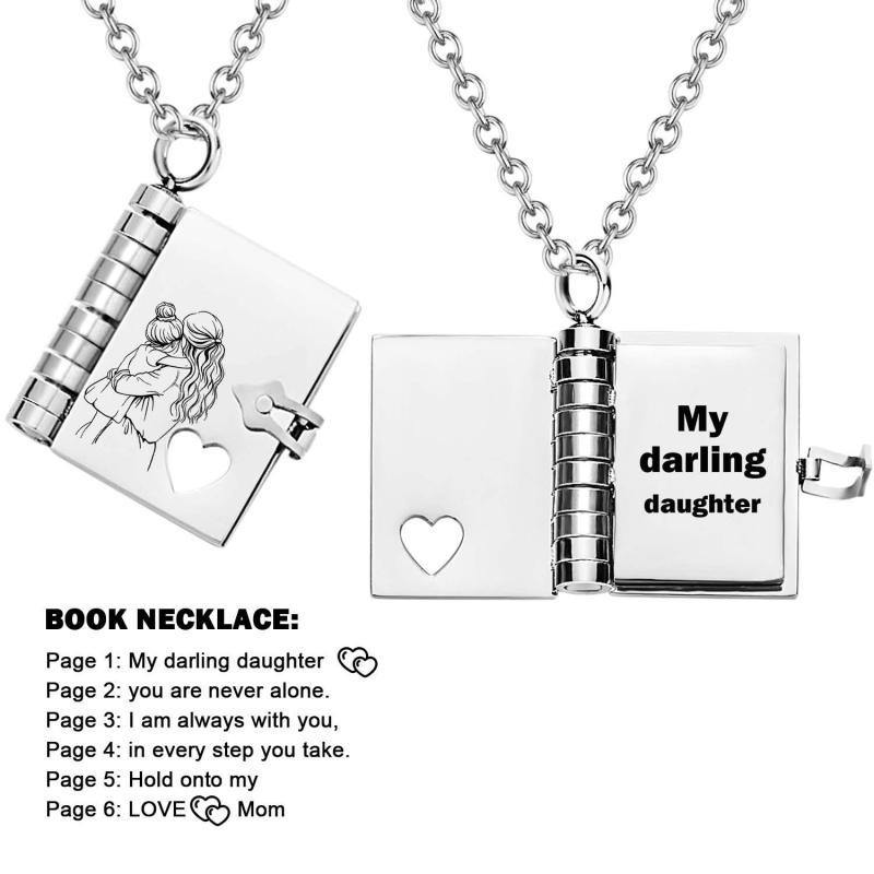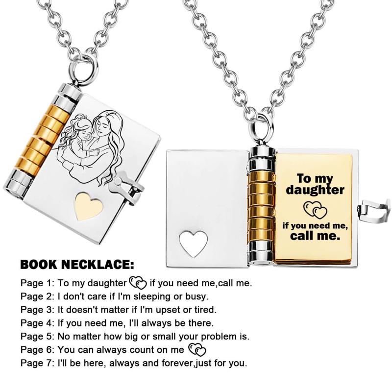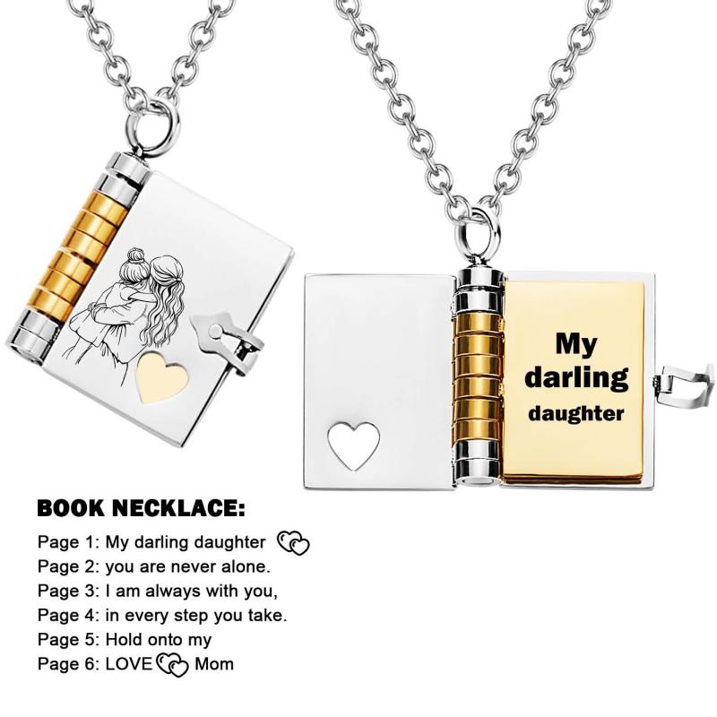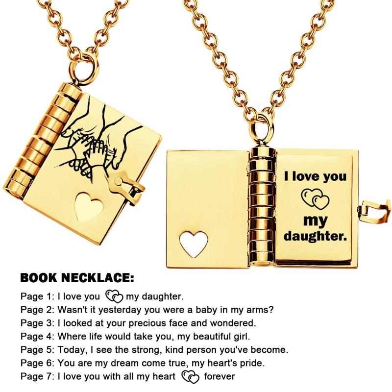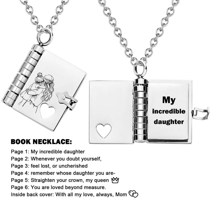 Celebrate the unique and loving relationship between you and your daughter with this stunning book-shaped pendant necklace. Expertly crafted from high-quality stainless steel, this necklace is both beautiful and durable, designed to last through all of life's moments.