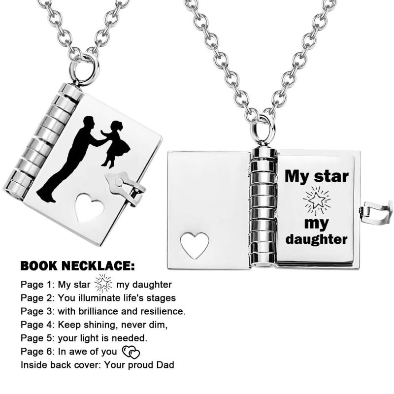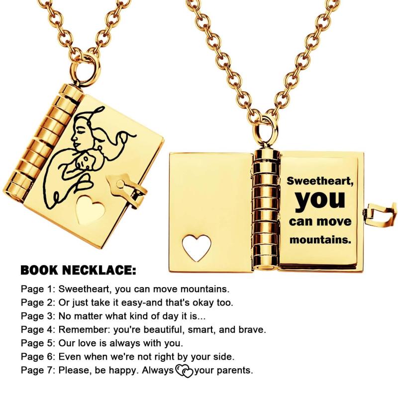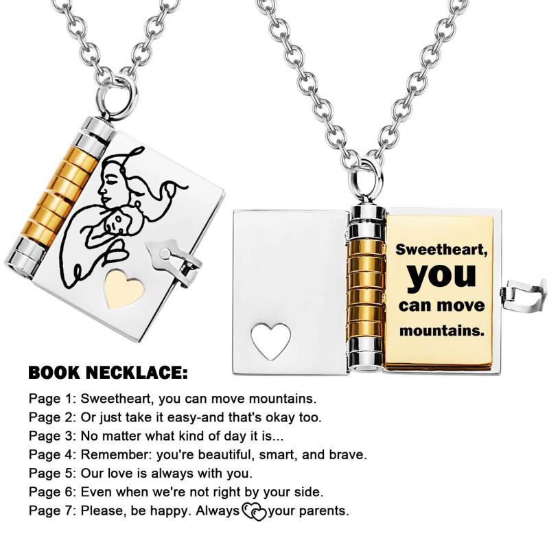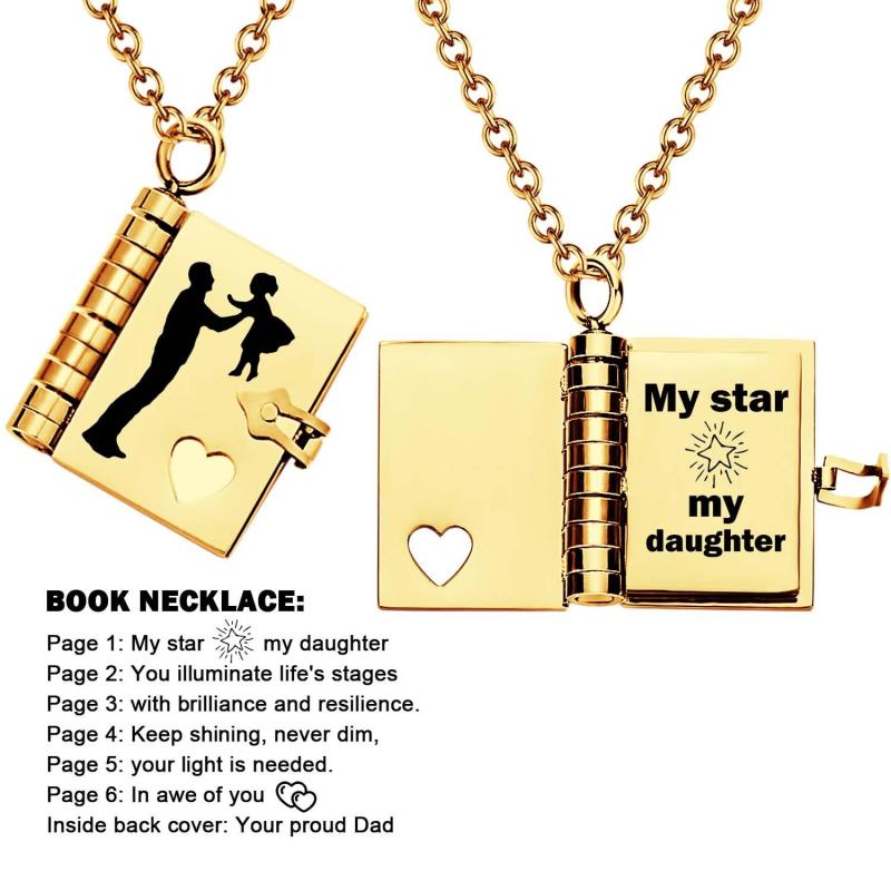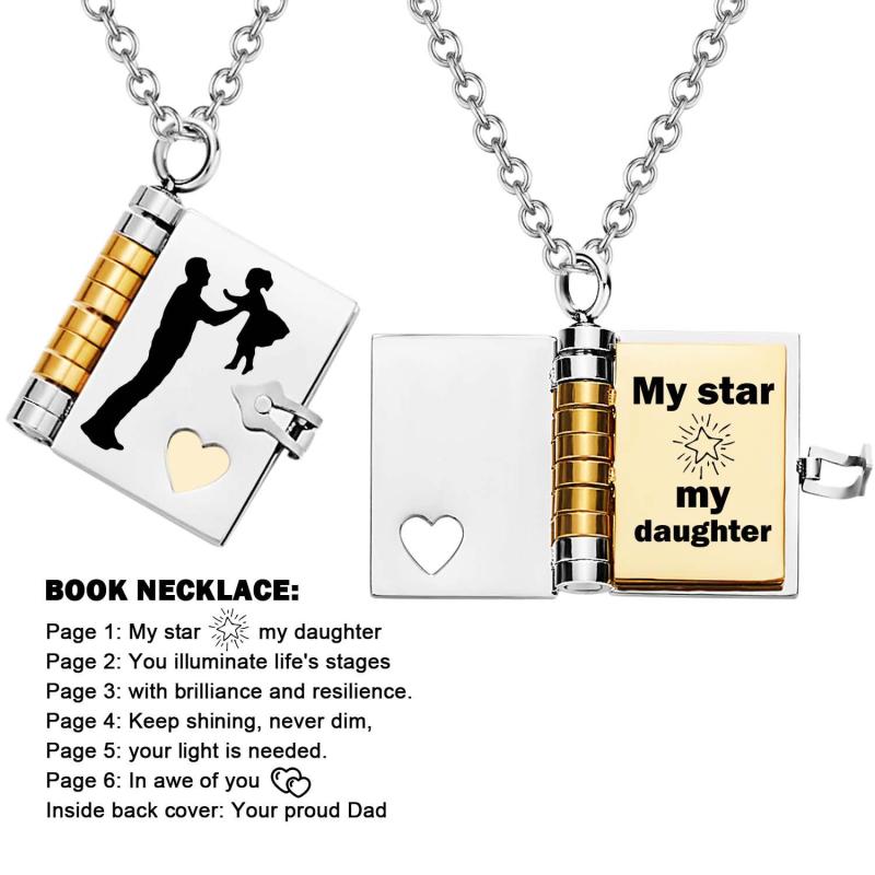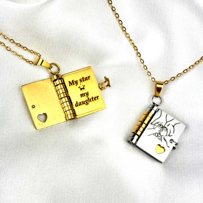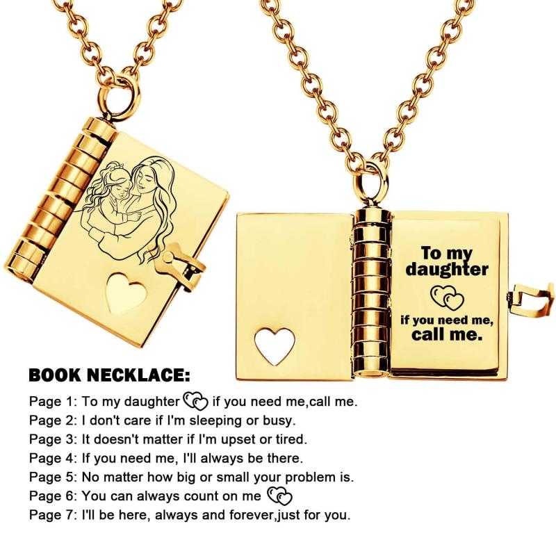Celebrate the unique and loving relationship between you and your daughter with this stunning book-shaped pendant necklace. Expertly crafted from high-quality stainless steel, this necklace is both beautiful and durable, designed to last through all of life's moments.