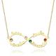 Name Necklace with Birthstone Infinity Necklace Four Names Four Birthstones 14K Gold Plated - Silver