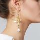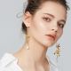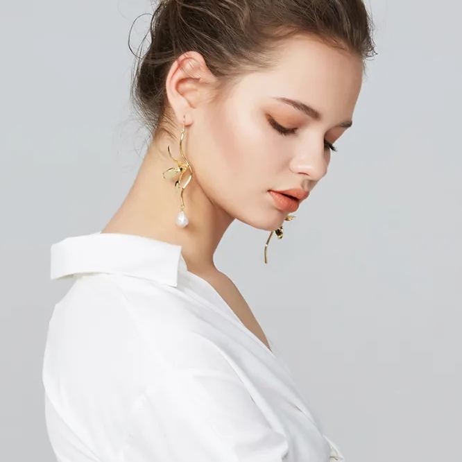 The combination of flowers and pearls highlights the vintage temperament; white petals wrapped in pearls, pure and elegant. The hand-carved orchid shape is natural and delicate. The two asymmetrical earrings are unique and attractive in design.