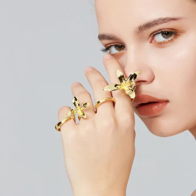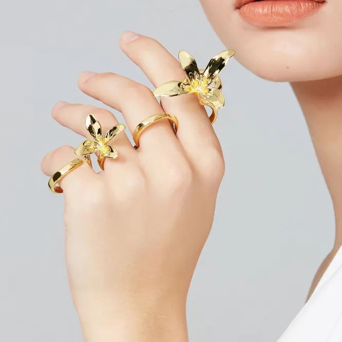 This ring features a natural orchid design, hand carved. The natural state of the petals has a unique art deco effect and vintage feel. Perfect for women who love fashion and have aesthetic pursuits.