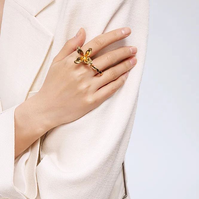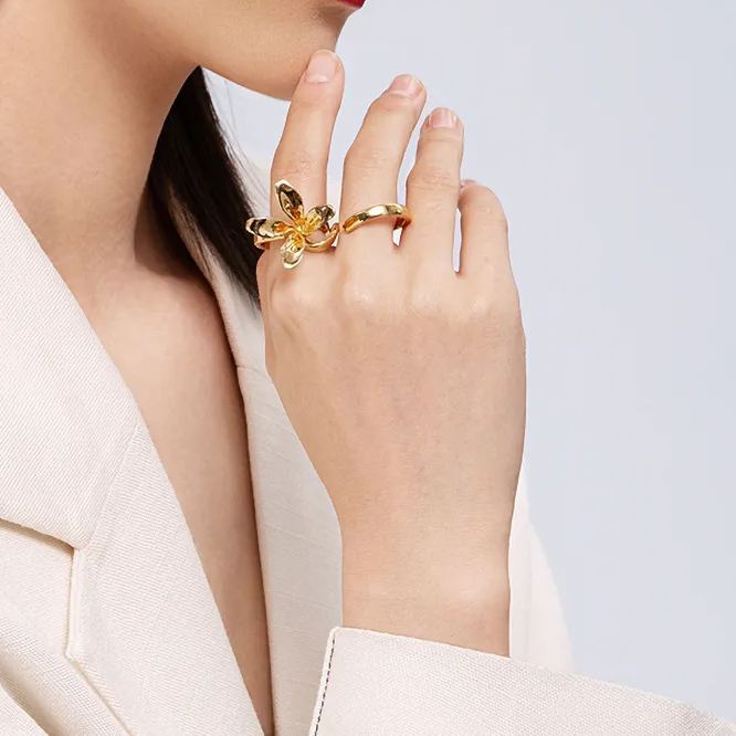This ring features a natural orchid design, hand carved. The natural state of the petals has a unique art deco effect and vintage feel. Perfect for women who love fashion and have aesthetic pursuits.