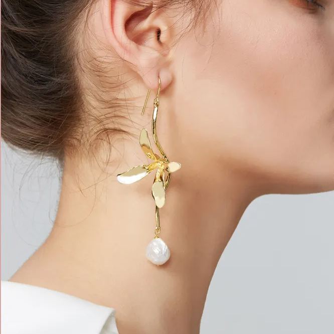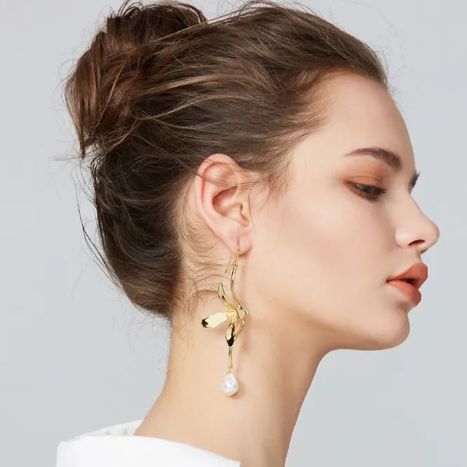 The earrings feature a natural orchid design, hand carved. White cold enamel gives the earrings a three-dimensional texture, and the asymmetrical ear hook design is soft and elegant, simple and vivid. Perfect for women who love fashion and have aesthetic pursuits.