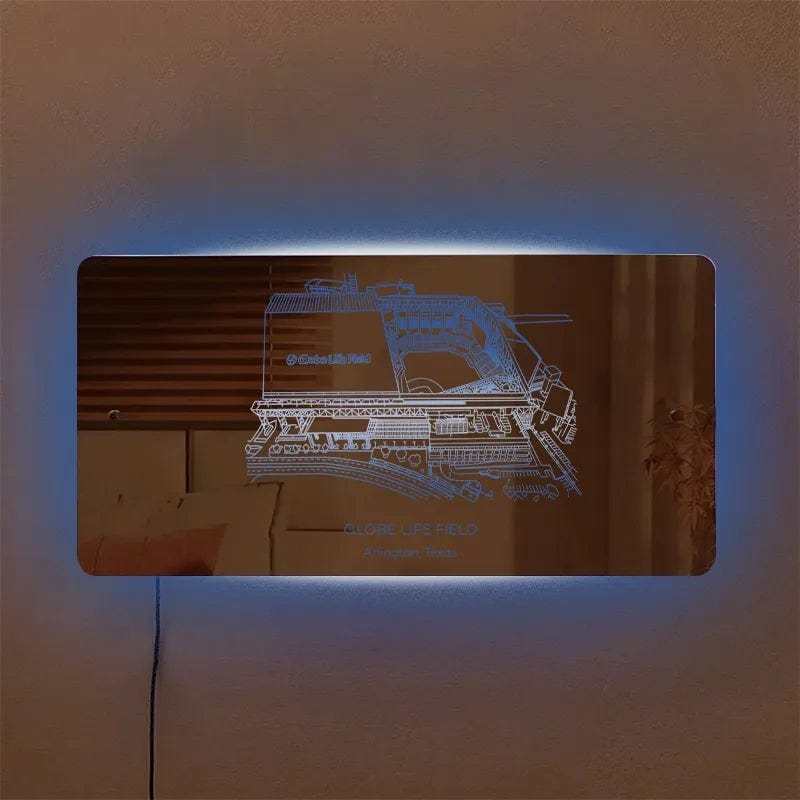 Step up your decor game with our Baseball Stadium Mirror Light, a perfect blend of sports passion and modern design. This innovative mirror light captures the essence of a baseball stadium while illuminating your space with a warm, inviting glow. Whether for your game room, man cave, or as a standout gift for sports lovers, this piece is sure to impress.