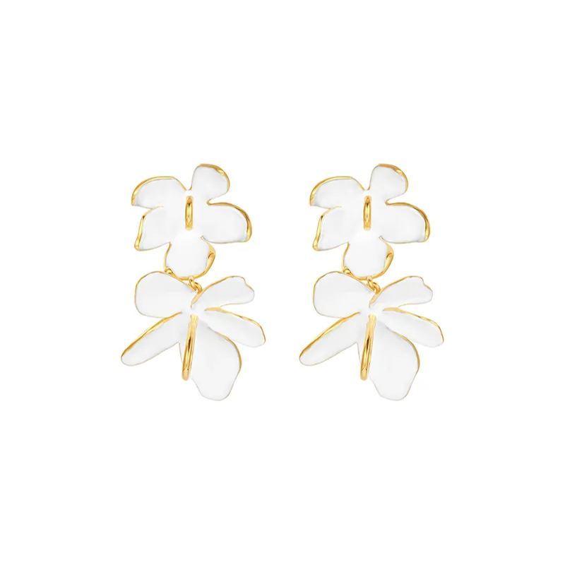 Material: 14K Gold Plated Brass / White Cold Enamel