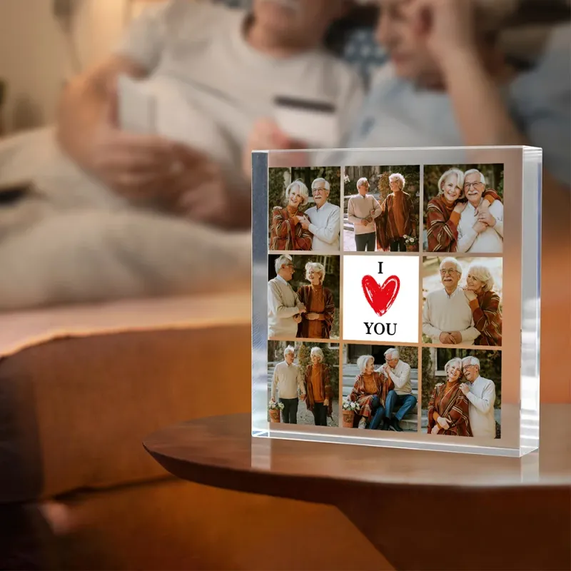 Personalised Heart I Love You 8 Photos Collage Square Acrylic Plaque Desk Decor Gift for Couple