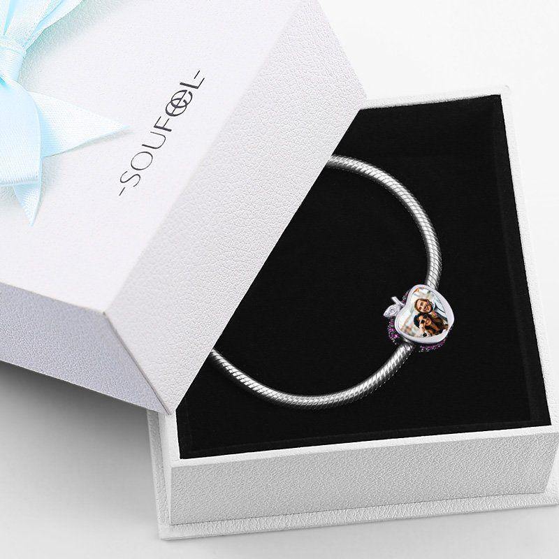 Personalized charm beads make for a fantastic gift giving option. Not only are they great for loved ones, but also one must always remember that it is a wonderful thing to treat themselves for beautiful jewelry from time to time. Featured here is a Soufeel Apple Crystal Photo Charm. The elegant pink Soufeel has become a favorite of many and it is so easy to see why. This is a dual-sided heart bracelet bead. One side can be customized with a picture of your choice or the choice of the recipients. Some image ideas include family pets, spouses, significant others, parents, grandparents, aunts, uncles, and BFFs. Then the other side of this heart bracelet bead is an apple.
