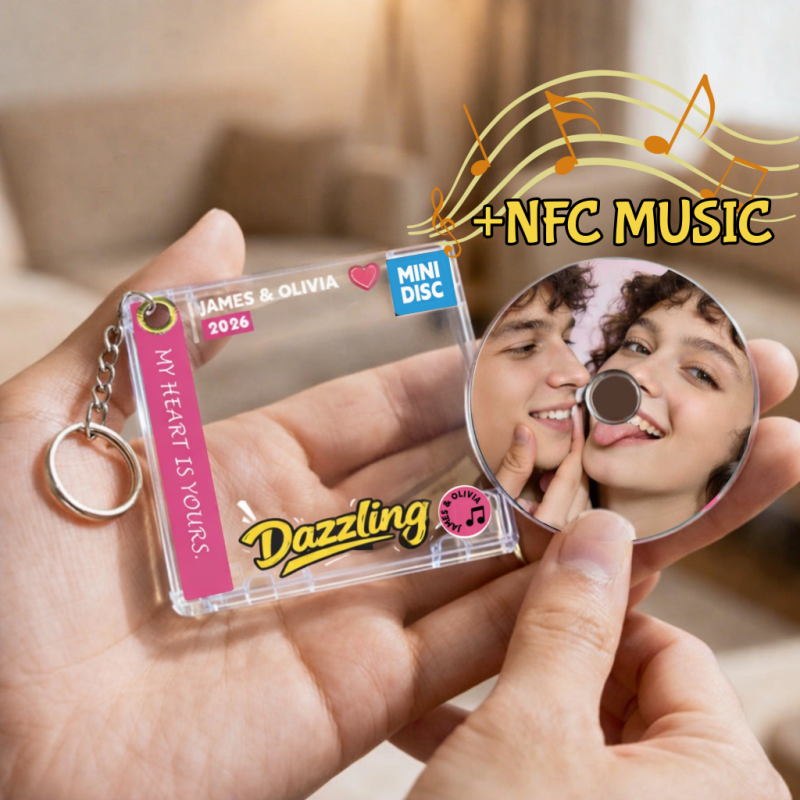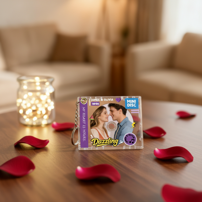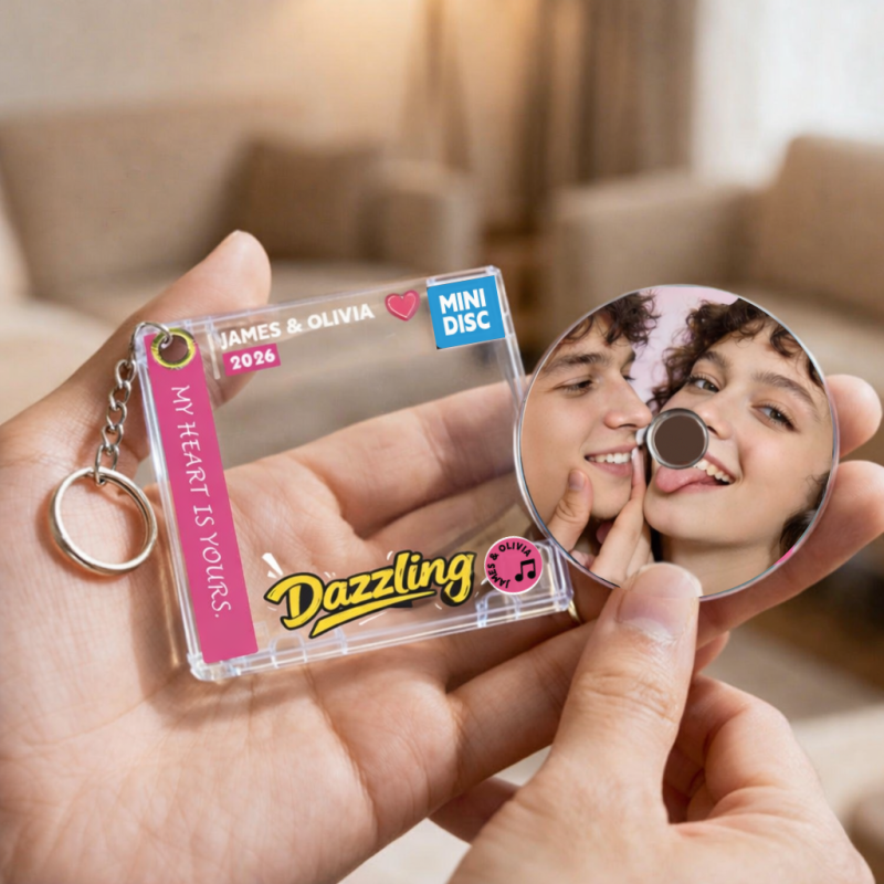 This personalized acrylic sliding CD keychain features a unique CD-inspired design with a smooth sliding cover, allowing you to customize it with your photo, name, and meaningful text.