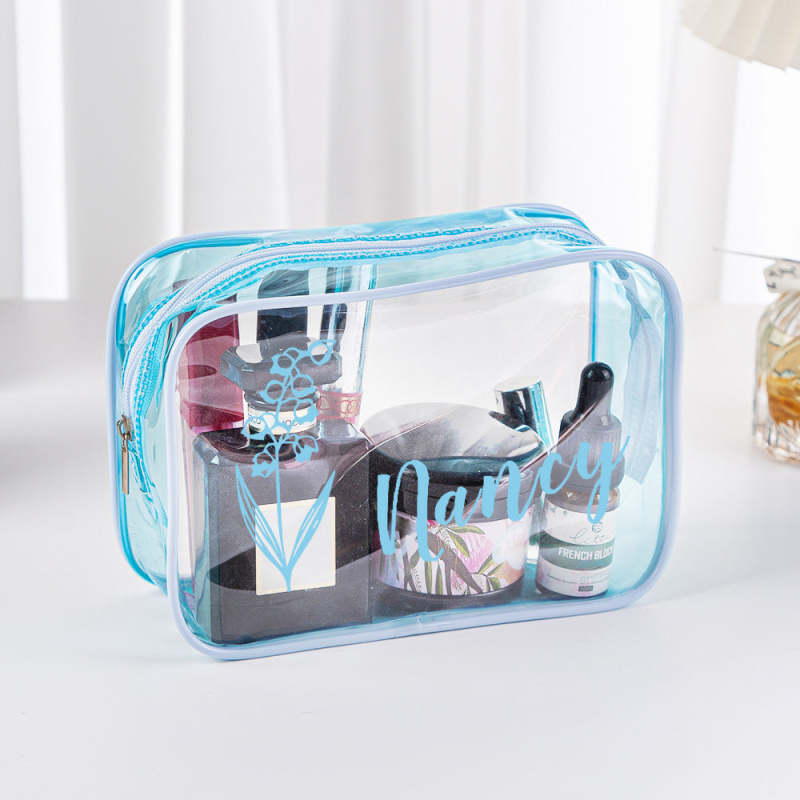 Personalized Birth Flower Name Clear Makeup Bag Birthday Wedding Travel Gift for Her