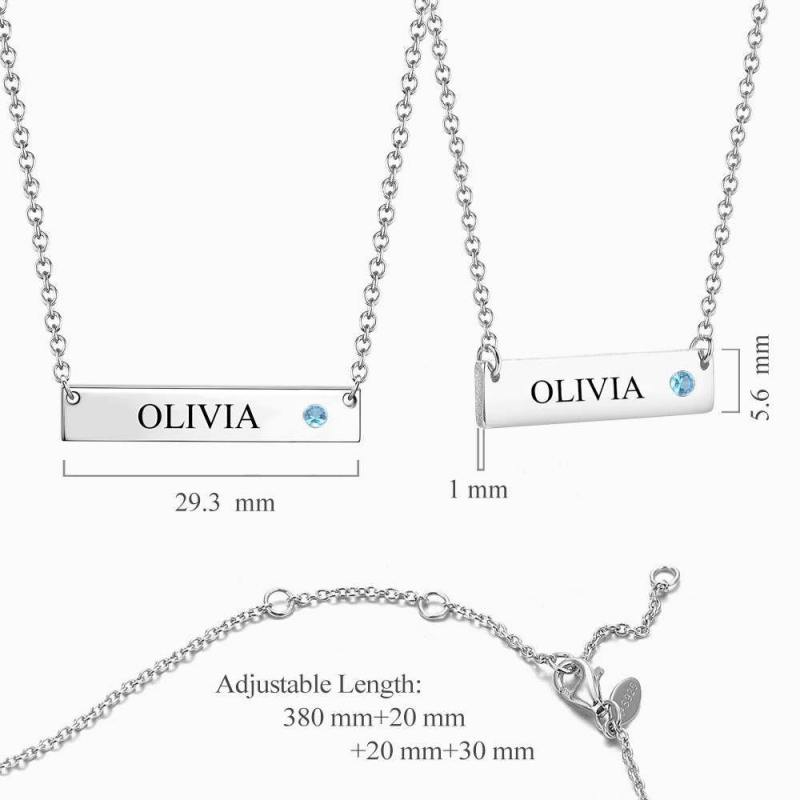 Personalized Birthstone Bar Necklace with Engraving Silver