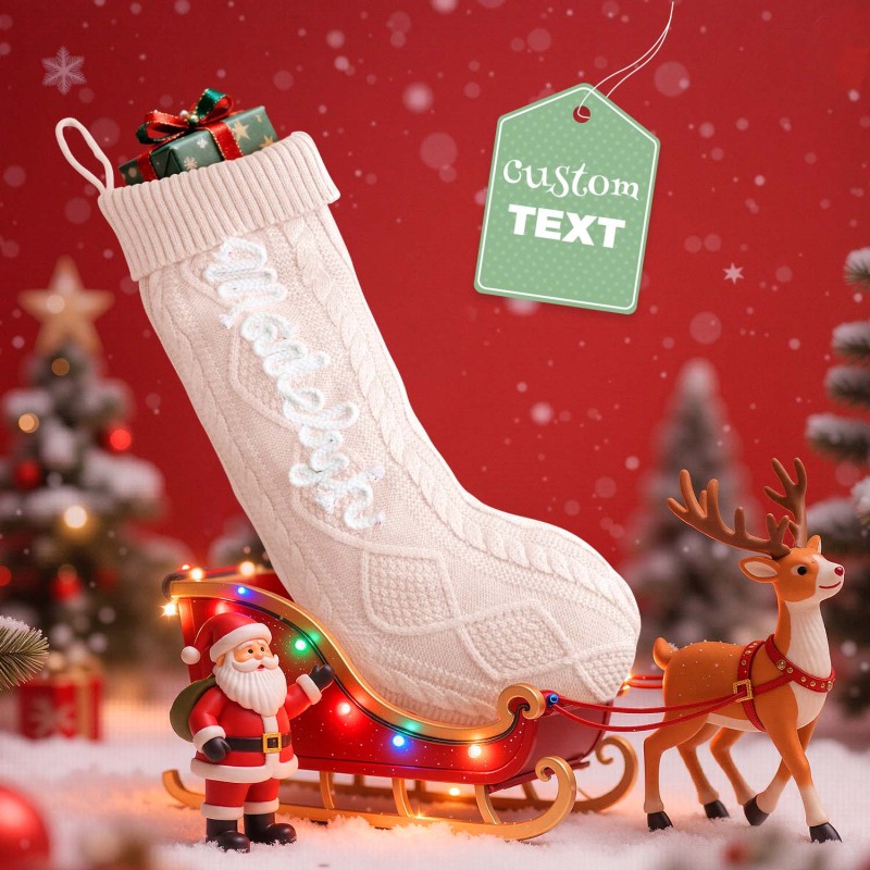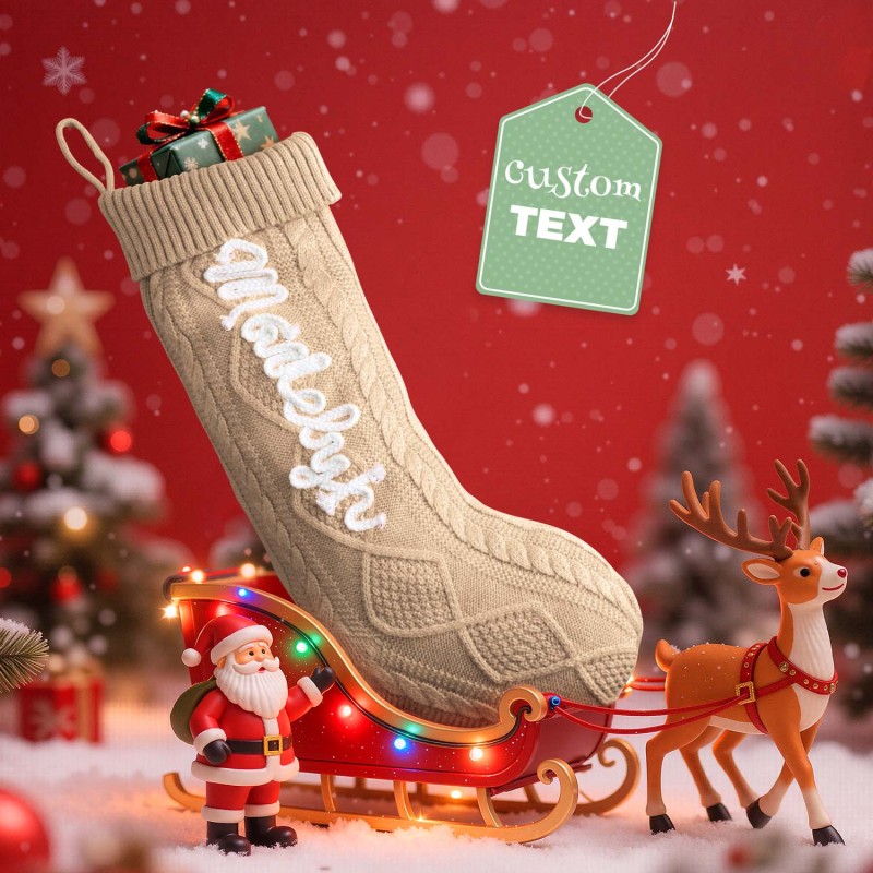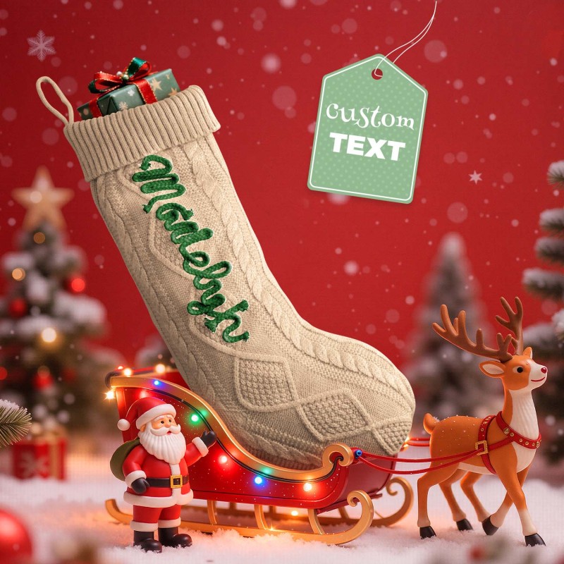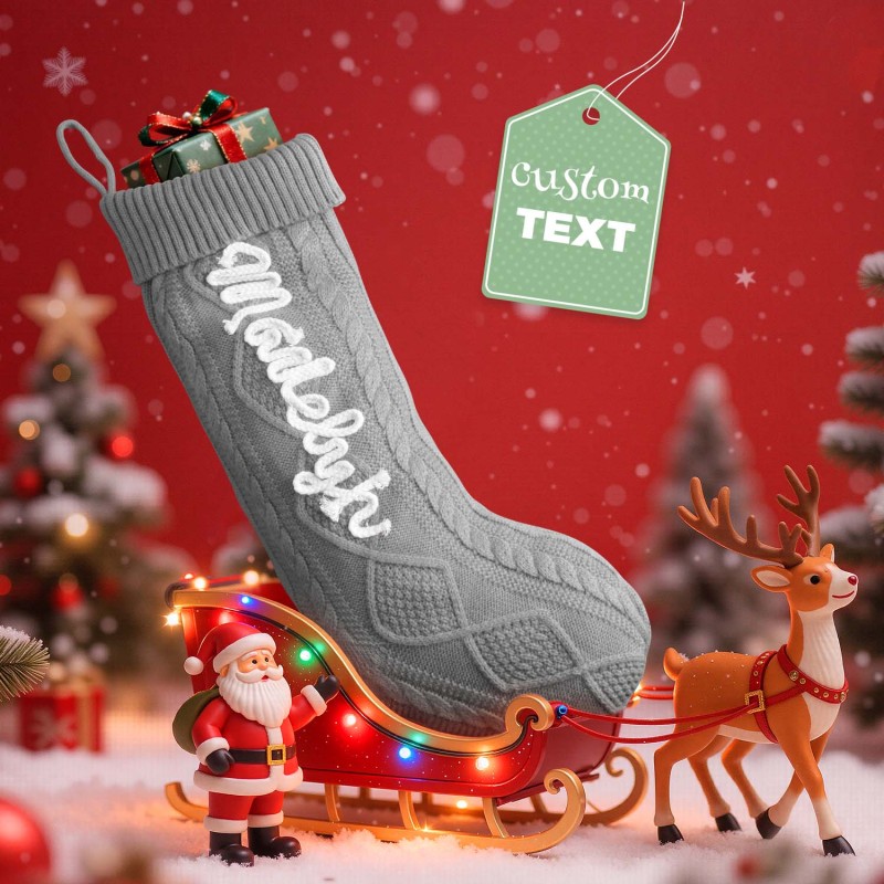 Celebrate the holidays with our Custom Christmas Stockings. These knitted stockings are beautifully crafted to add a personal, festive touch to your home. Each stocking can be personalized with a name, making them perfect for the entire family. Available in five color options for the stocking itself, and three color options for the name embroidery, you can mix and match to suit your holiday decor.