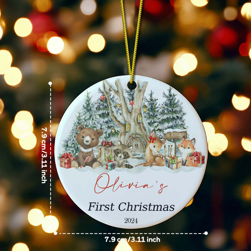 Our personalized baby first Christmas ornament is the perfect addition to your holiday decorations. Made specifically for celebrating your new bundle of joy, this ornament is custom-made with your baby's name and features a cute design, making it a memorable gift and keepsake for your family.