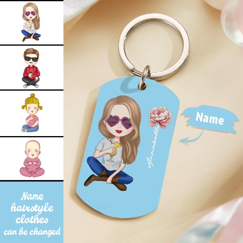 Our calendar keychain expresses a aldult‘s or child's personality by combining adorable cartoon characters with birth flowers. You have various styles to pick from hair, T-shirt, and other designs to help you create the desired look. Additionally, you can personalize the name and the birth flower, turning this keychain into a unique companion for your loved ones.
