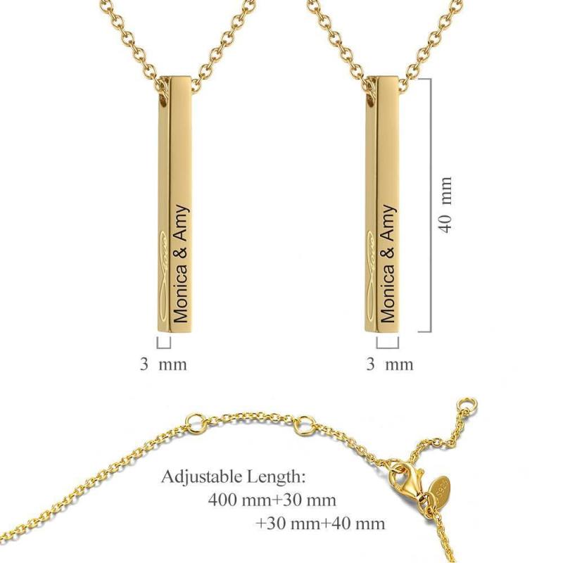 3D Engraved Vertical Bar Necklace 14K Gold Plated Silver