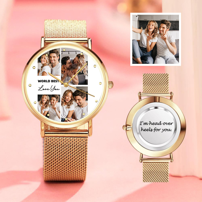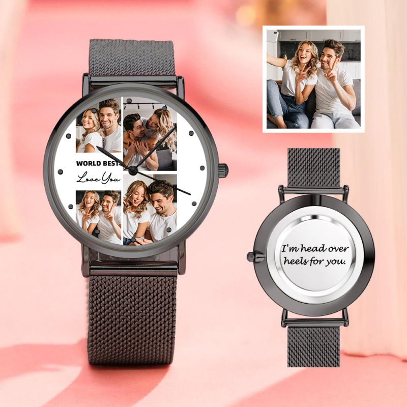 Watch face: Special Alloy and glass, outer diameter 1.57 in (4 cm) Watch band: Special Alloy, length 8.7 in (22 cm), width 0.7 in (1.8 cm) Surprise your loved one with a personalized photo watch that is custom made to suit any personality. The design image is directly printed inside the surface of the watch. Once you place an order, you will be able to preview how it will appear on the watch. Please remember that the high quality picture will come out better than the preview. This personalized photo watch cannot be refunded once we have started the manufacturing process. A personalized photo watch always makes a great gift and will never go out of style. Buy yours today!
