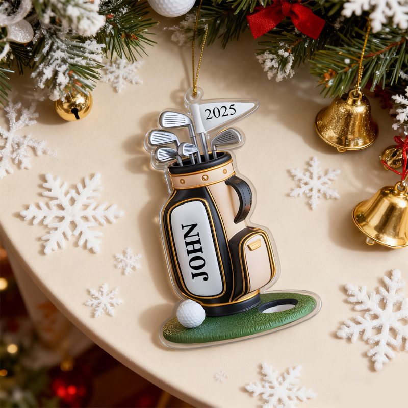 Elevate your holiday gifting with our Custom Name Golf Bag Ornament. Perfect for golf enthusiasts, this charming ornament adds a personal touch to Christmas trees, gift displays, or office décor. Crafted with attention to detail, it features a miniature golf bag design that proudly highlights the recipient’s name for a truly thoughtful present.