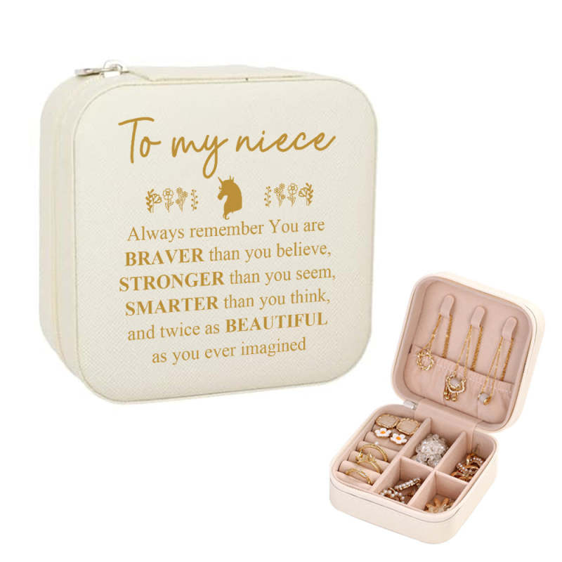 Surprise your niece with this personalized jewelry box! Customize it with her name and show her how much she means to you. Perfect for keeping all her jewelry organized and stylishly stored away!