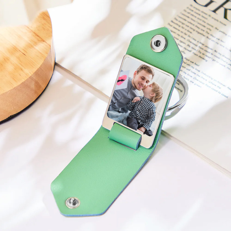 Personalized Leather Photo Drive Safe Keychain Custom Engraved Text Commemorative Keychain Gifts For Father
