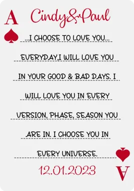 Transform your love story into a work of art. This custom photo playing card pattern blanket incorporates your cherished memories into a romantic playing card design, perfectly blending the comfort of a modern blanket with meaningful personalized elements. Inspired by the viral "How Lucky We Are" love poster aesthetic, it's more than just a gift; it's a visual commemoration of your connection, your luck, and your shared beautiful moments.