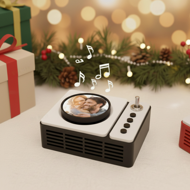 Bring music and memories together with this Custom Music Mini Record Player - a retro-inspired, high-tech personalized gift perfect for Christmas.