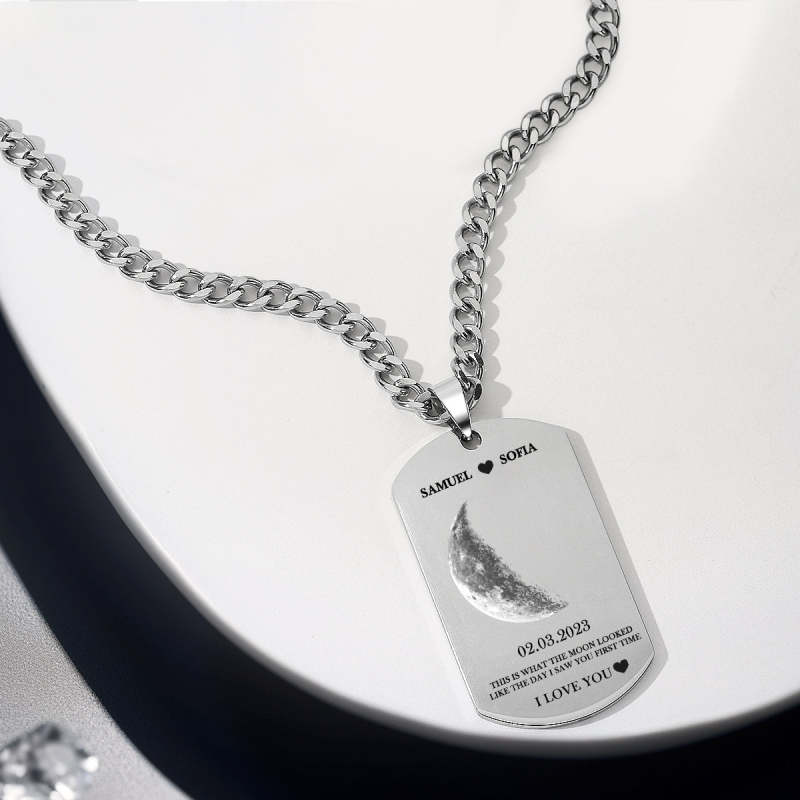 Our customization service allows you to engrave the pendant with your name, a brief message between you and your special someone, or even a picture of the moon on a specific date, making this necklace unique and unique to your memories and emotions.
