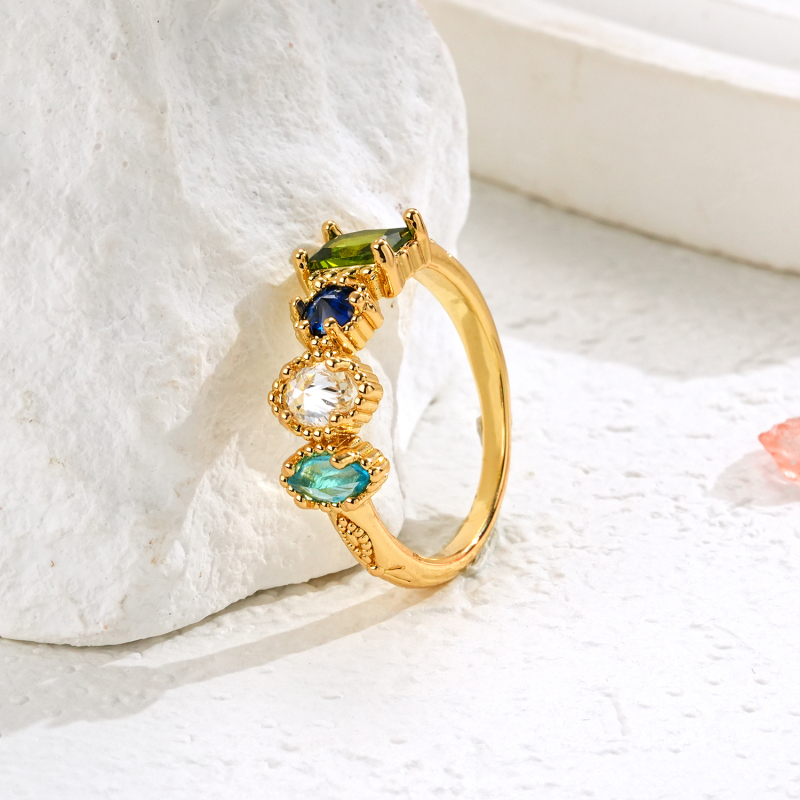 Personalized Birthstones Ring Multiple Vintage Milgrain Ring for Mom Grandma