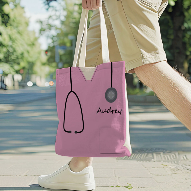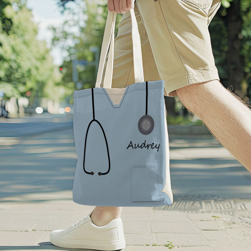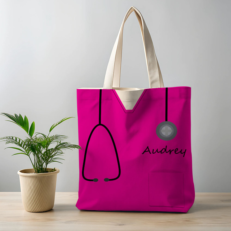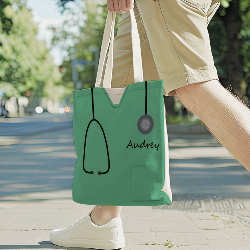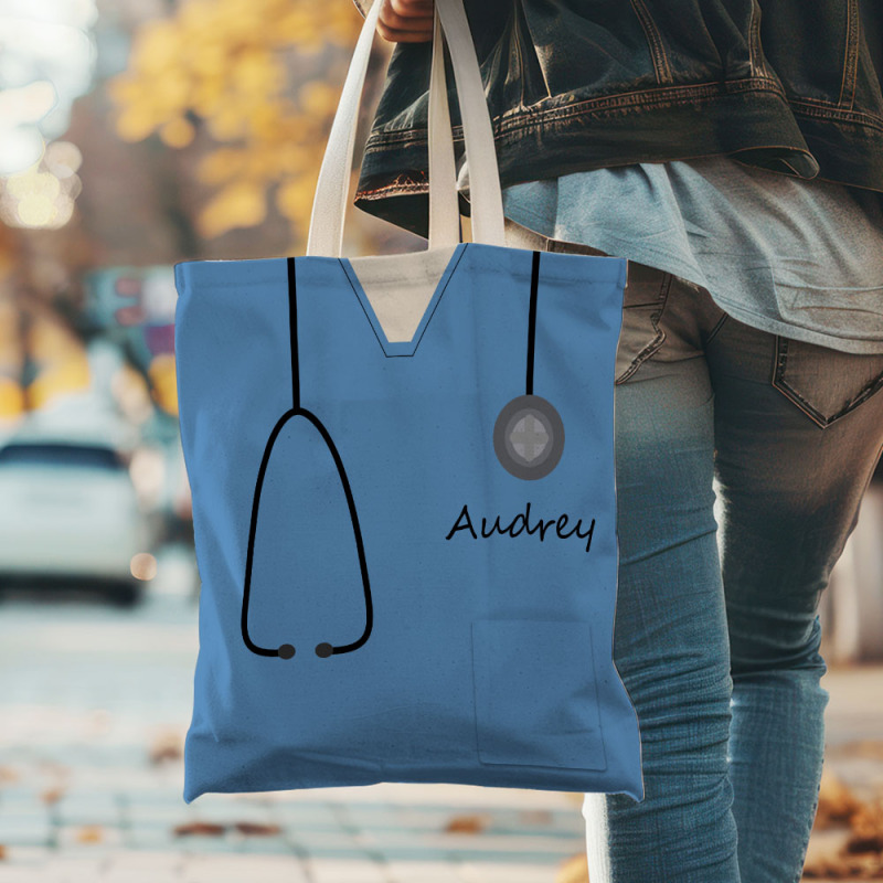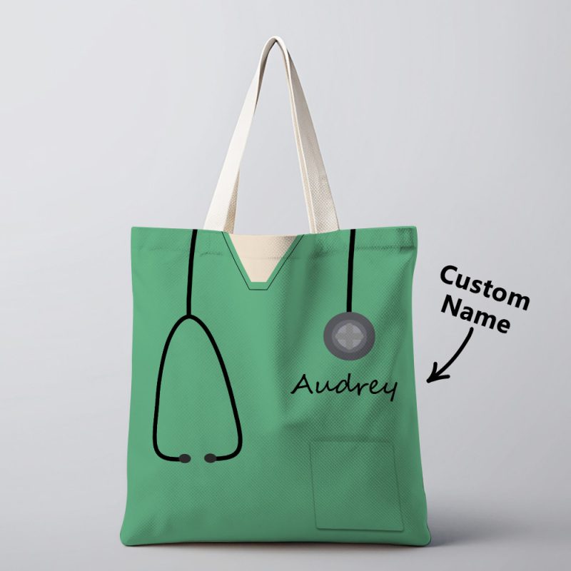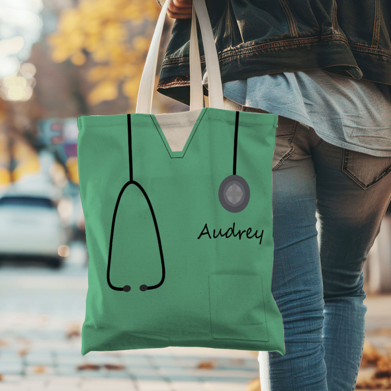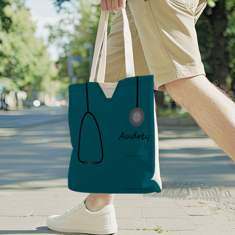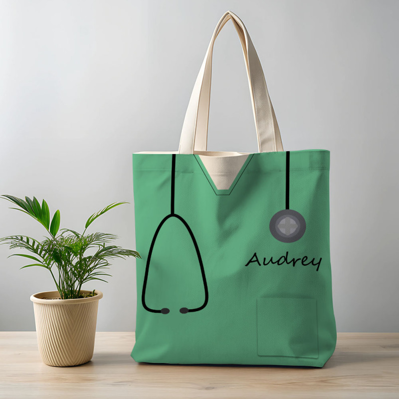 Personalized Name Nurse Medical Scrubs Teal Tote Bag