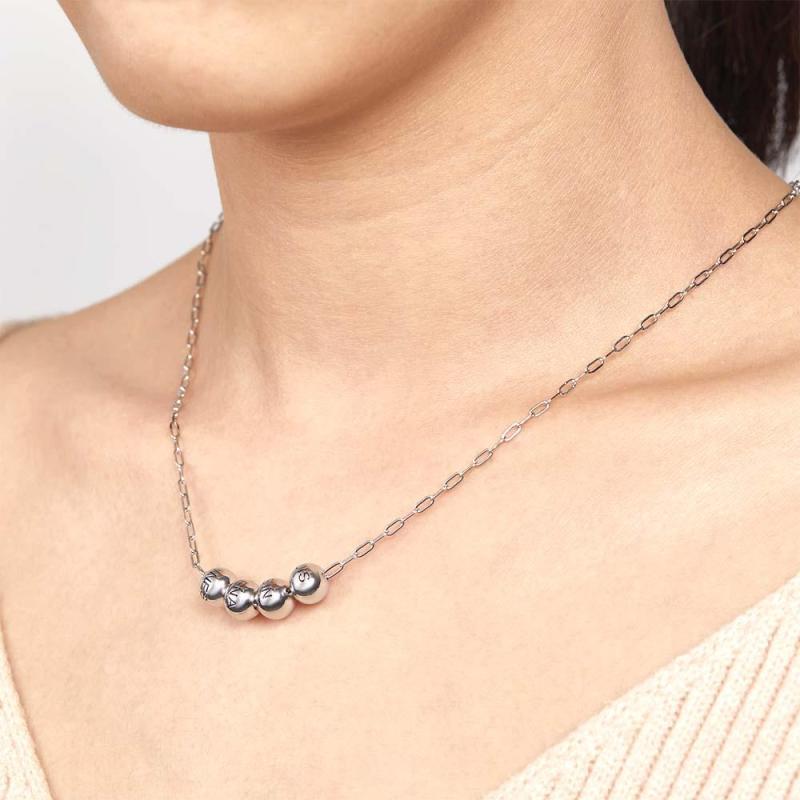 This stylish and personalized necklace with up to 8 names engraved on it is perfect for celebrating your loved ones. Its intricate design guarantees minimalistic elegance and makes an ideal gift for loved ones. Plus, it can be customized to fit the wearer's taste!