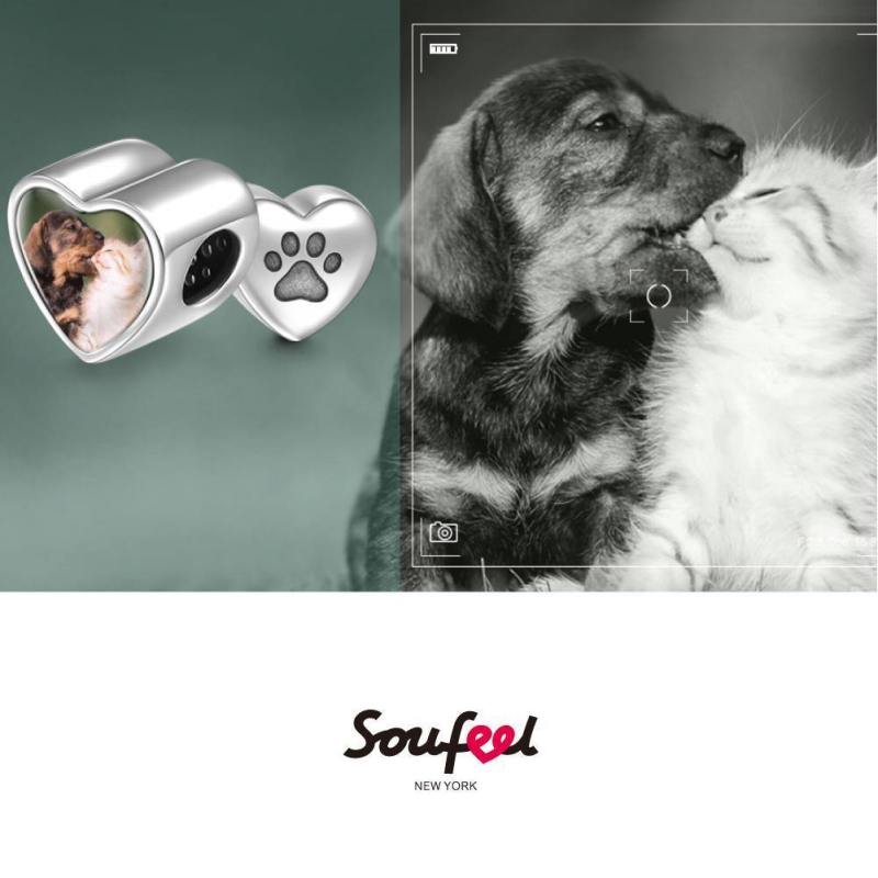 Paw Print Heart Photo Charm Silver