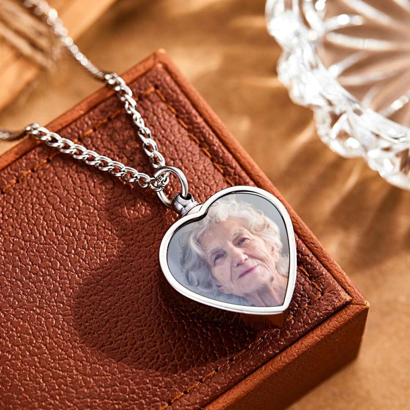 This Heart Shaped Urn Necklace Can Be Customized with a Colorful Commemorative Picture on the Front Side. A Special Date, Name or Short Words of Respect and Love Can Be Engraved on the Back Side.