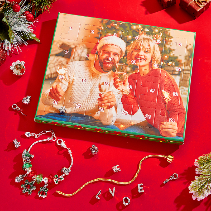 Personalized Photo Jewelry Advent Calendar Photo Charm Surprise Blind Box Bracelet 24 Calendar Countdown Gift Box Bracelet For Christmas