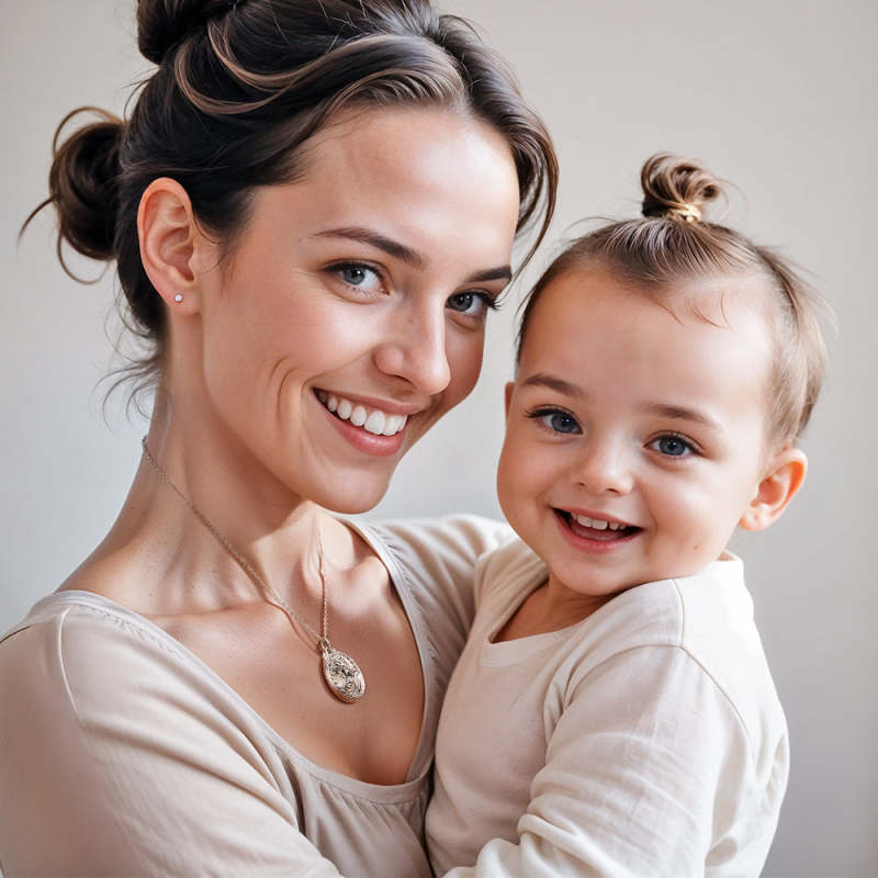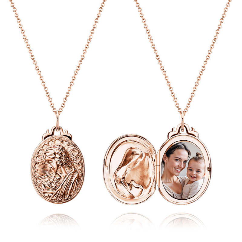 The locket features a beautiful design, with a mother embracing her child, symbolizing the unconditional love between a mother and her child. The intricate design adds a touch of elegance and the option to customize it with a special photo makes it a truly unique and heartfelt present. This personalized locket photo necklace is a perfect gift to celebrate birthdays or honor moms on Mother's Day.