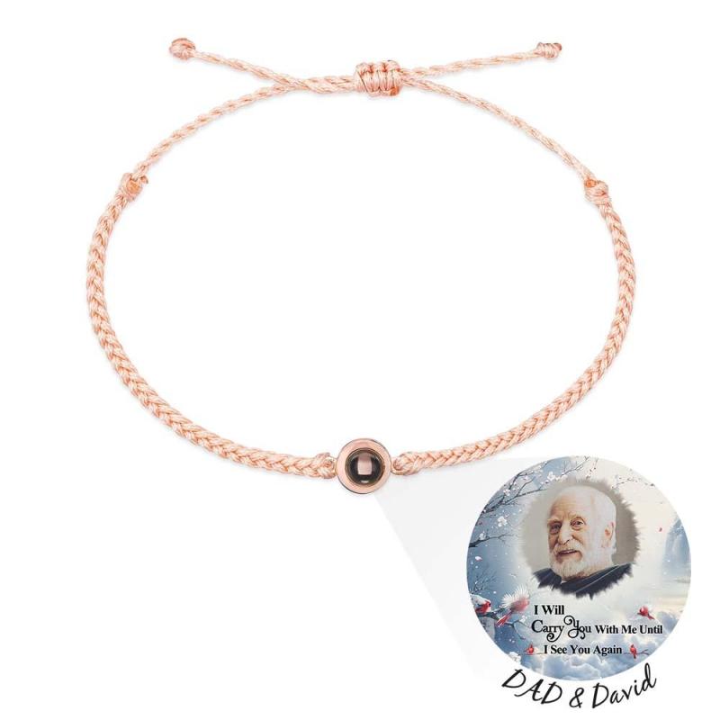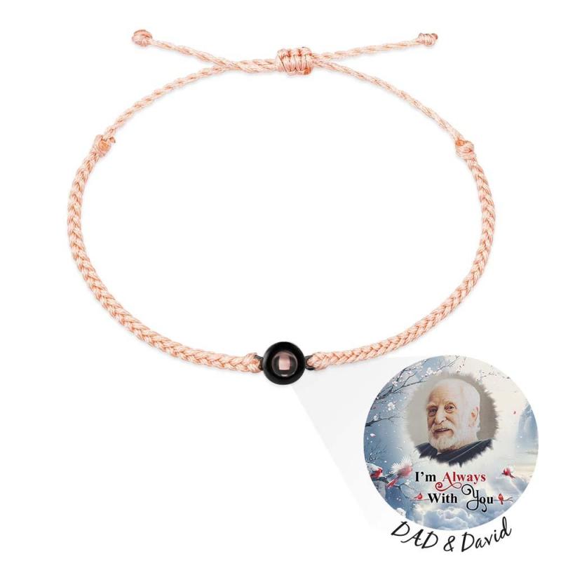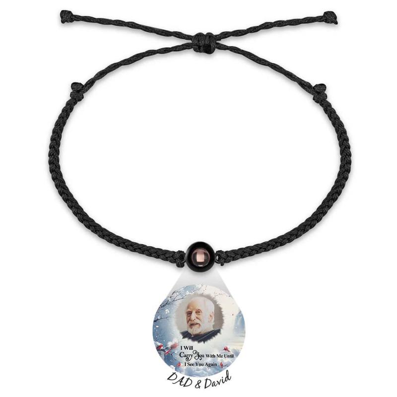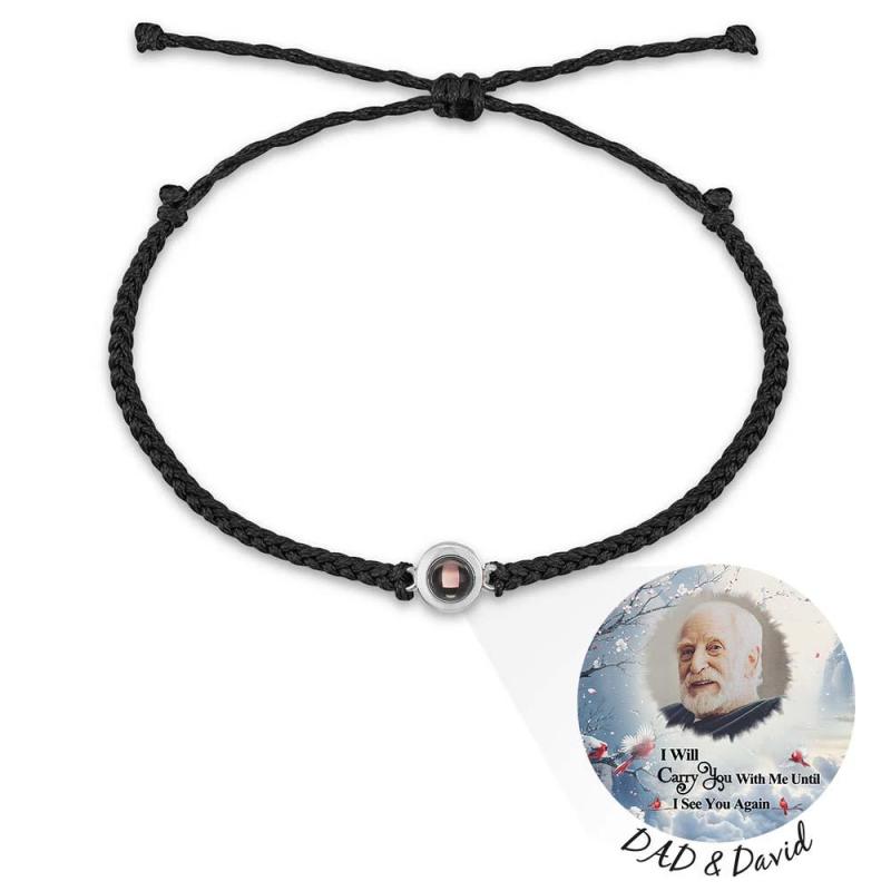 Personalized Photo Projection Bracelet Braided Black Rope Circle Bracelet Memorial Gift for Father's Day