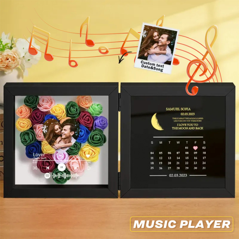 🎵 Personalized Music Flower Shadow Box - With Real Moon Phase & a Song of Your Love! 🌙🎶